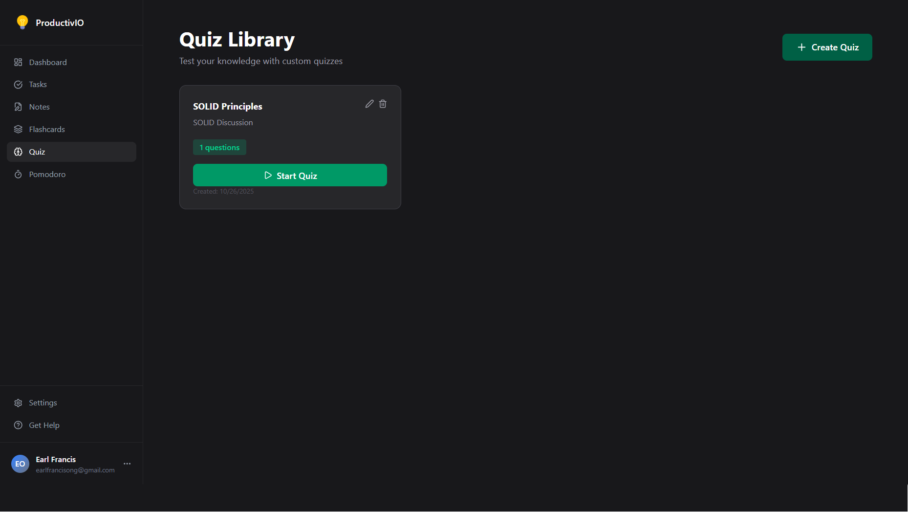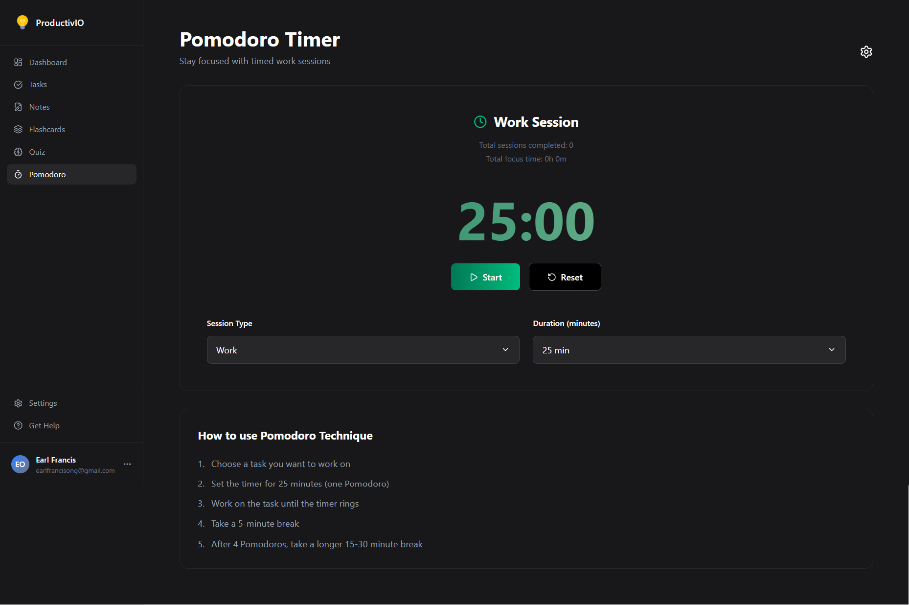 Productivity Hub — a web platform with notes, tasks, Pomodoro timer, flashcards, and quizzes.