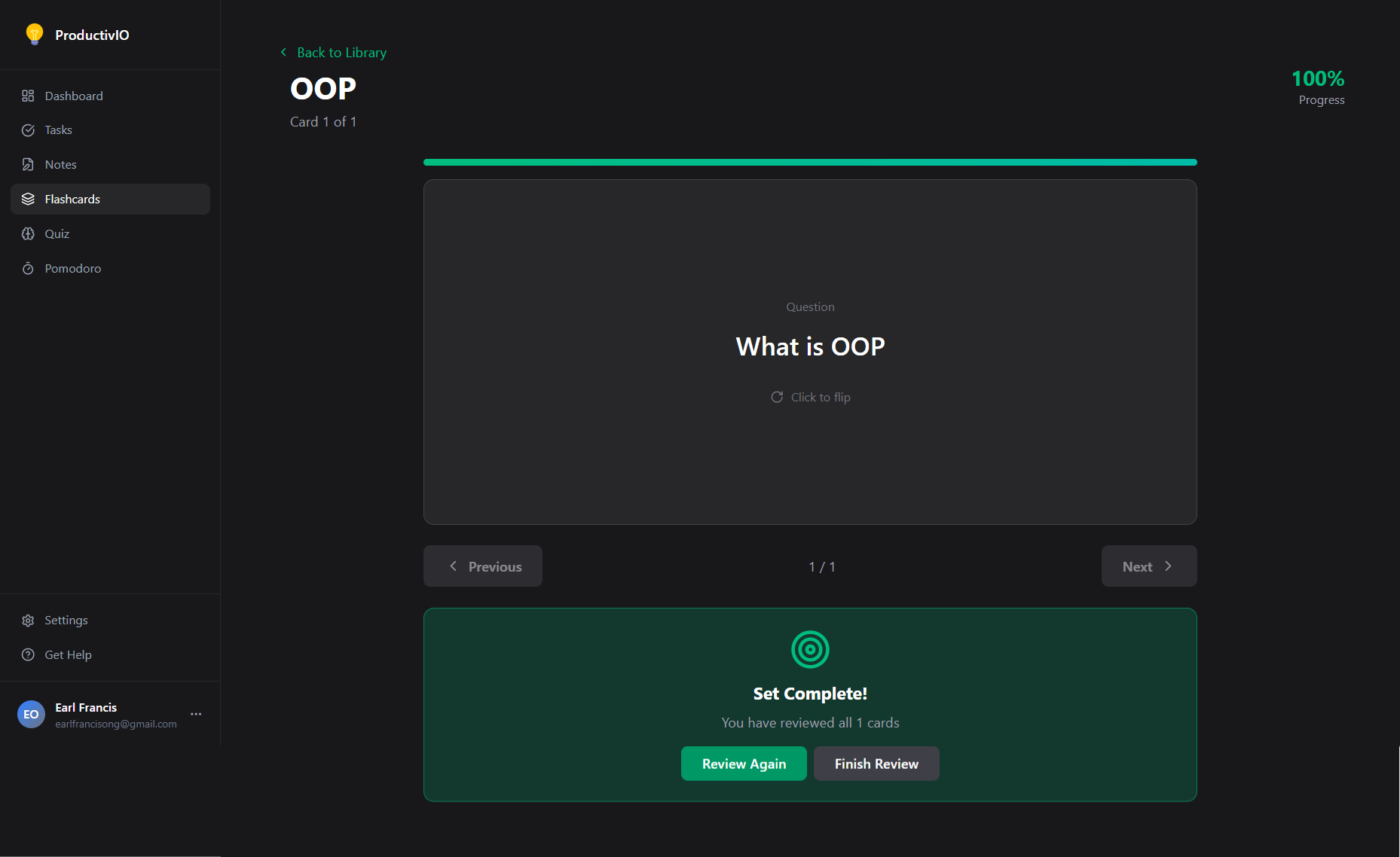 - Confidence Rating - Mark cards as 'Got it' or 'Need Review'
