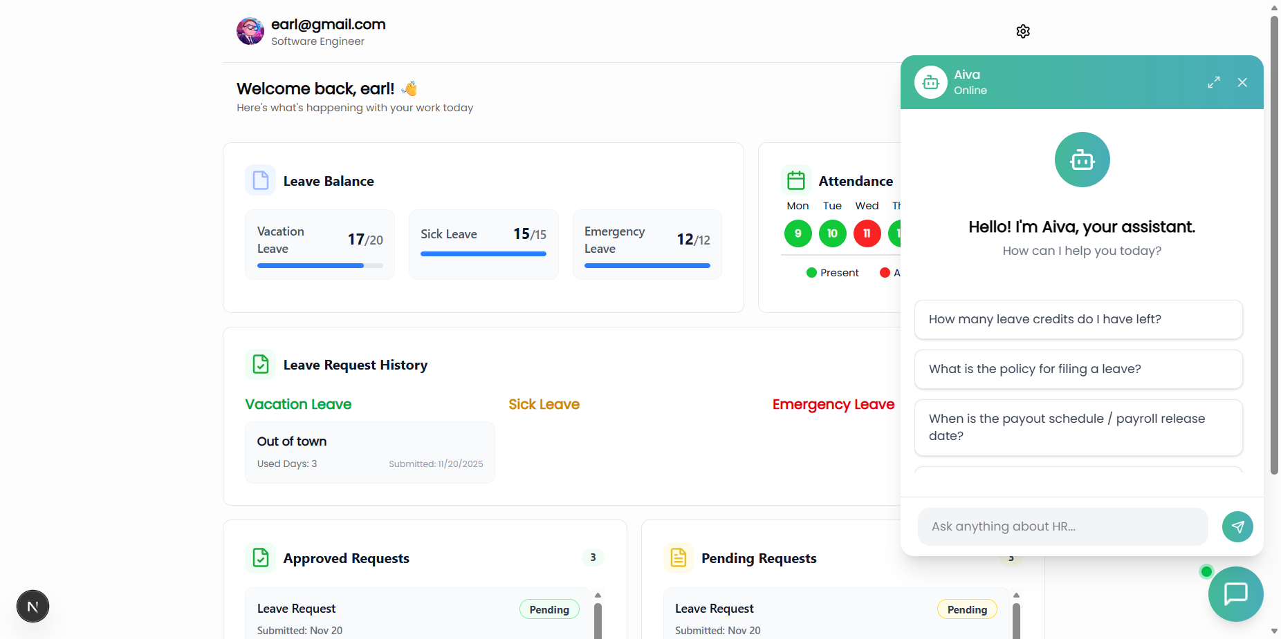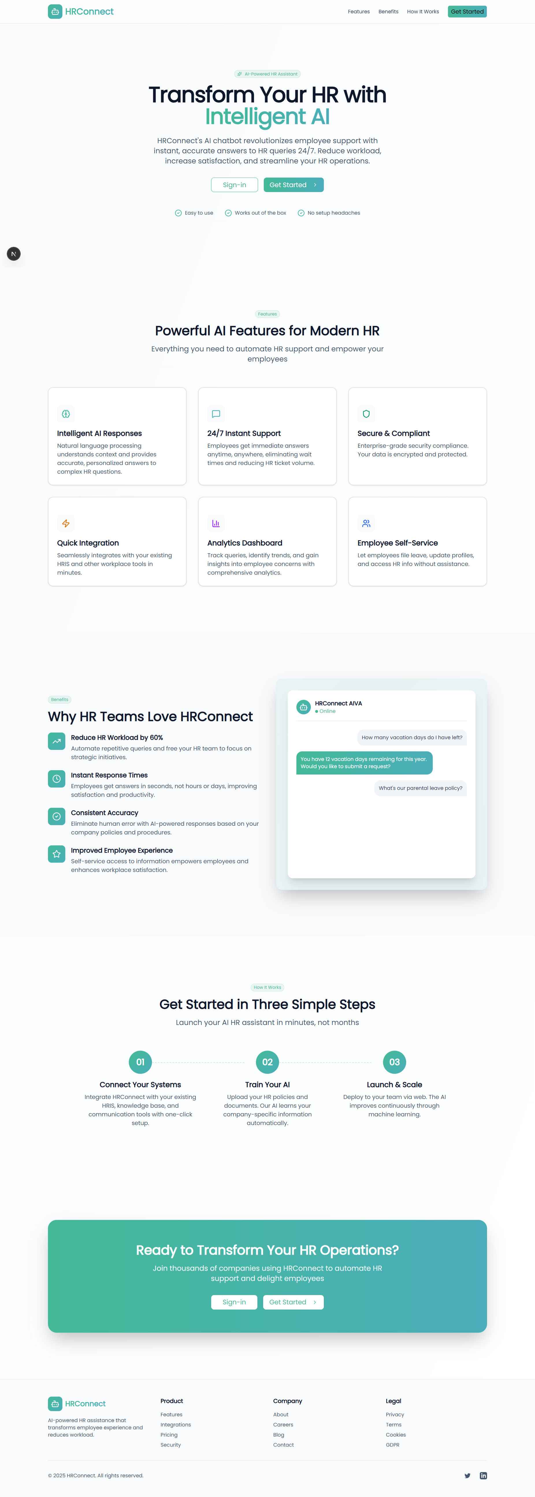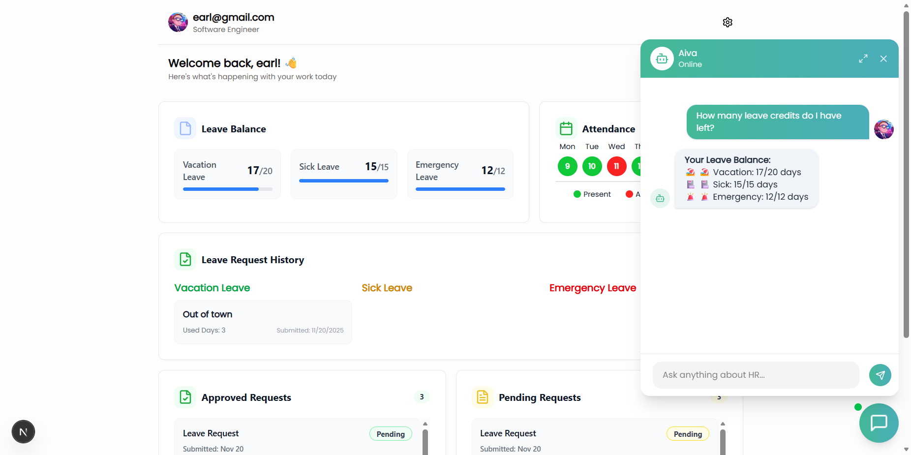 An intelligent HR assistant that provides 24/7 support through an AI-powered chatbot. Features include instant policy retrieval, leave validation, and real-time HRIS integration, streamlining operations while boosting employee satisfaction.
